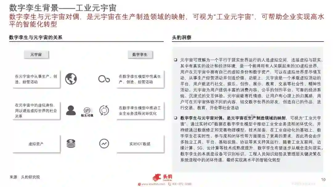 数字孪生与元宇宙对偶,是元宇宙在生产制造领域的映射。