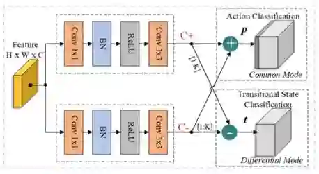 在过渡感知分类器方面,为区分过渡性状态,旷视研究员设计两个分类器以同时分类动作和动作状态,并进一步提出一个共模和差模的网络方案,加速 TACNet 整体的收敛。