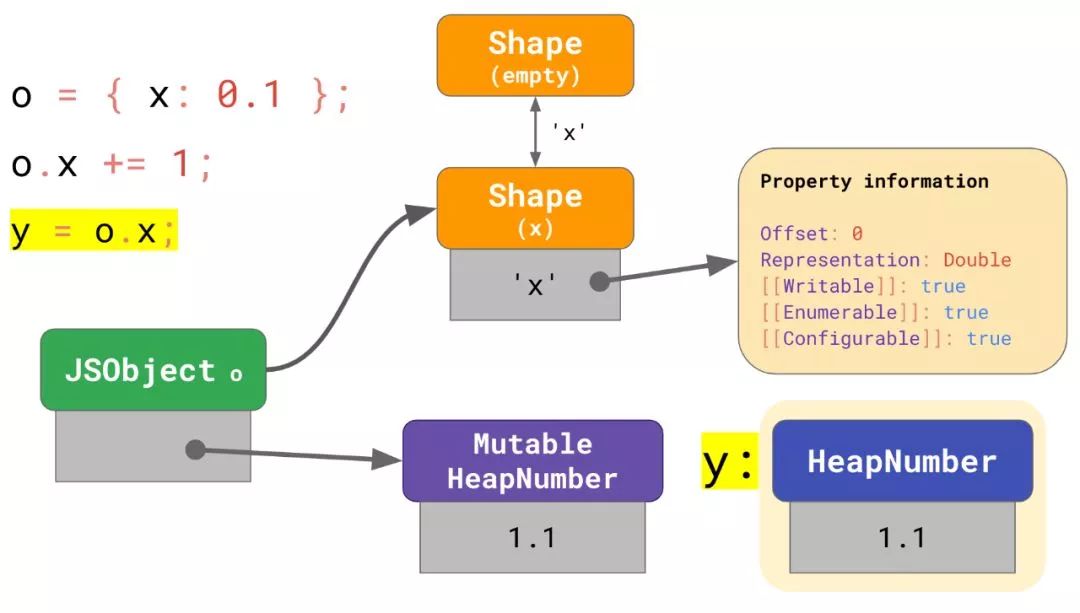 举个例子,如果你将o.x赋值给另外一个变量y,你不会希望y值的改变也带来x.o的改变 -- 这是违反 JavaScript 规范的!所以当o.x被访问时,这个数字必须得重新装箱成一个正常的HeapNumber,然后再赋值给y。