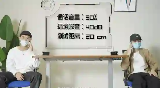 我们把两台手机的音量都开到 100%,然后一位同事坐在 1 米外的位置,由她来复述话筒里说的生词,看正确率有多高。