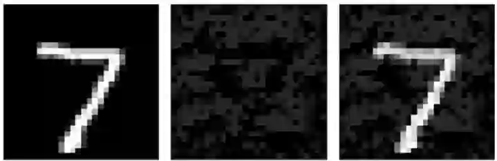 原始图像(左图),对抗噪声(中图),扰动后的图片即对抗样本(右图)被错误地分类为数字 2