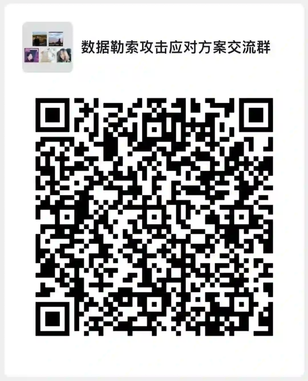 。文末附二维码,欢迎扫码加入数据勒索应对方案交流群。
