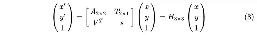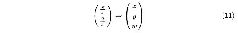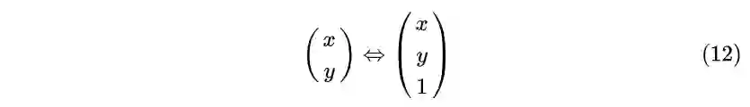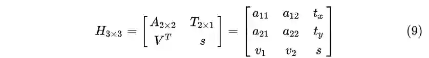 由平面坐标与齐次坐标对应关系 ,上式可以表示为: