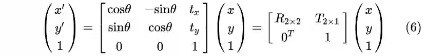 那么就可以把把旋转和平移统一写在一个矩阵乘法公式中,即刚体变换: