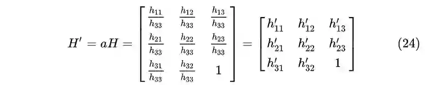 所以单应性矩阵 虽然有9个未知数,但只有8个自由度。