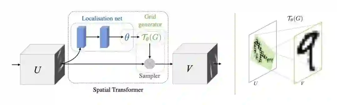 其中 对应STN中的仿射变换参数。STN直接在特征维度进行变换,且可以插入轻松任意两层卷积中。