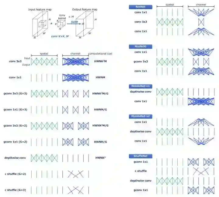 在解释具体的高效CNN模型之前,我们先检查一下高效CNN模型中使用的组成部分的计算量,看看卷积在空间和通道域中是如何进行的。