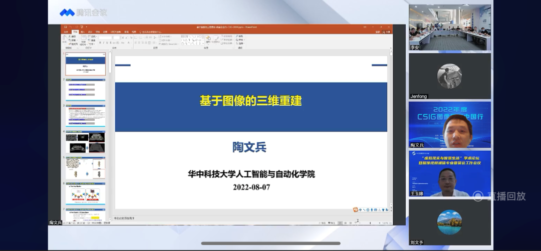 活动由上饶师范学院副校长、CSIG图像视频通信专业委员会常务委员王玉皞主持会议,华中科技大学人工智能与自动化学院陶文兵教授、国防科技大学郭裕兰副教授、华中科技大学电信学院杨欣教授作主题报告。本次会议得到了广泛关注,吸引了来自线上线下的600余位参加会议。