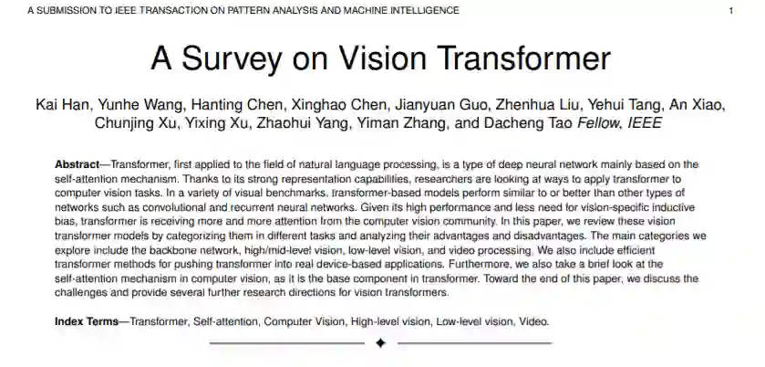 华为诺亚方舟实验室联合北大和悉大整理了业界第一篇视觉Transformer综述。