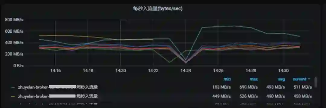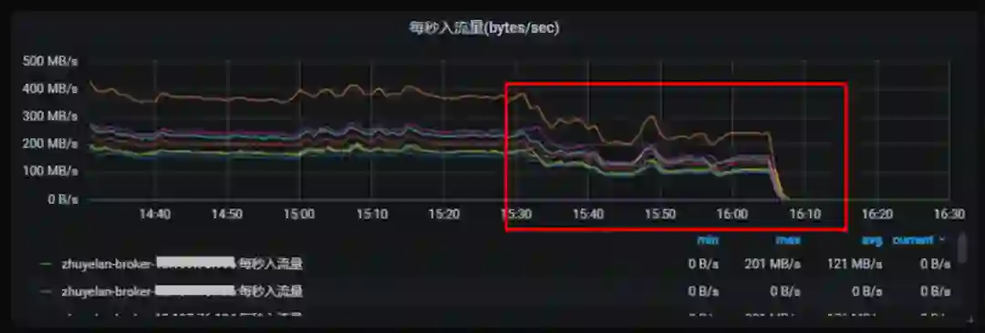 图 21. 执行 Kill-9 一台 Broker 后,其他 Broker 流量下降