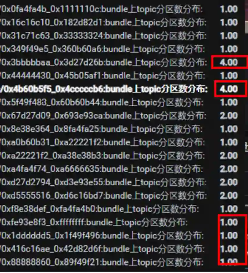上图可看出,有两个 Bundle 分配了四个分区,远超其他 Bundle。实践中出现以下问题: