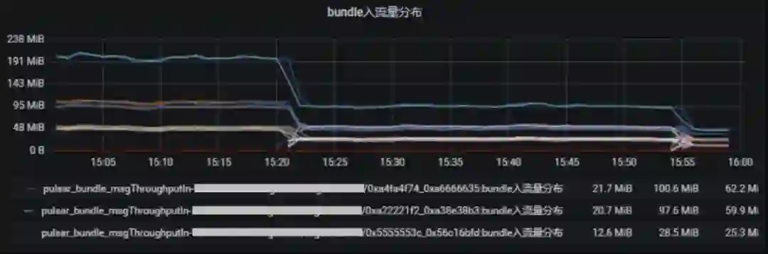 优化过程中,关键在于将分区打散到不同 Bundle 上,但分区数量太少很难做到。Topic 通过哈希算法分配到 Bundle 上在前文已经介绍。此案例中,问题在于分区数量少。