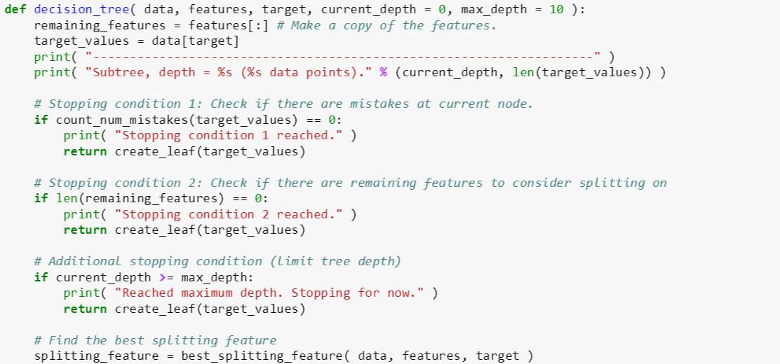 反之,用递推方法继续用 decision_tree 来创建子树,这时 current_depth 在原来基础上加 1