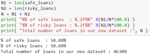 现在好坏贷款的比例是一比一,我们也发现总样例数从 122607 减少到 46300。