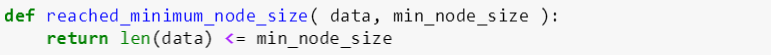 如果 reached_minimum_node_size 返回值小于 min_node_size,创建叶子 (提前停止条件 2)