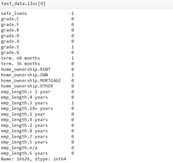 第一条数据的 home_owernship 特征是 RENT,可写成