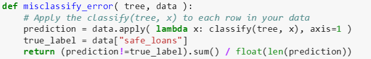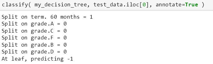 用 classify 函数来看看分类结果,这棵树在 6 次分裂后预测它是恶性贷款。