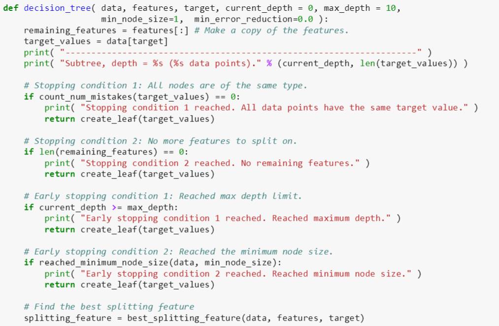 下面 decision_tree 函数是上章的加强版,主要考虑了提前停止条件 2 和 3。