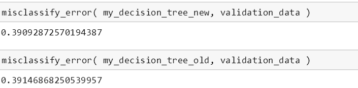 接下来看看这两棵树在训练数据和验证数据上的表现,即检查训练误差和验证误差: