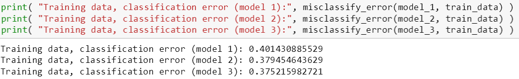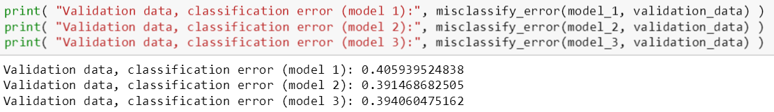 从模型 1 到 3,它们的复杂度是递增的,由下图可知它们的训练误差是递减的 (符合逻辑),但是模型 3 的验证误差比模型 2 的大,这说明模型 3 过拟合了数据。