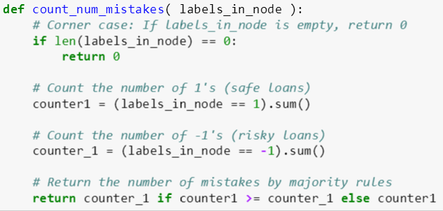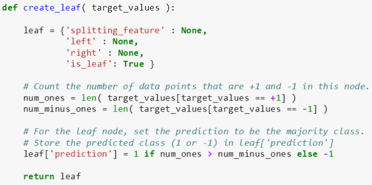 如果误分类个数 (用 count_num_mistakes) 为 0,创建叶子 (停止条件 1)