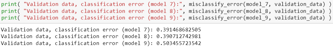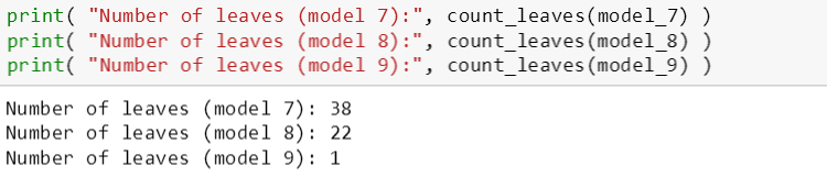模型 7 和 8 的验证误差相似 (模型 9 的验证误差相比太大),但是它们的叶子数分别是 38 和 22,由此看出模型 7 比模型 8 要复杂。