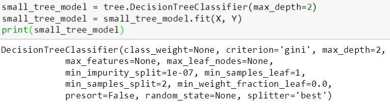 DecisionTreeClassifier 函数括号里的变量都可以赋予不同的值,斯蒂文此时就只想通过变化 max_depth 来控制树的复杂程度。