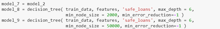 模型中 max_depth 和 min_error_reduction 都是一样的, 因此斯蒂文想排除其他控制“过拟合”参数,而只关注 min_node_size 对树的影响。
