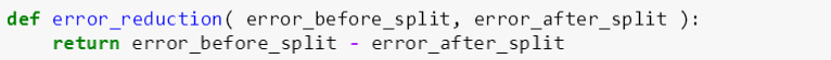 该函数返回分裂前后的分类误差的差值,用于预修剪中的提前停止条件 3。