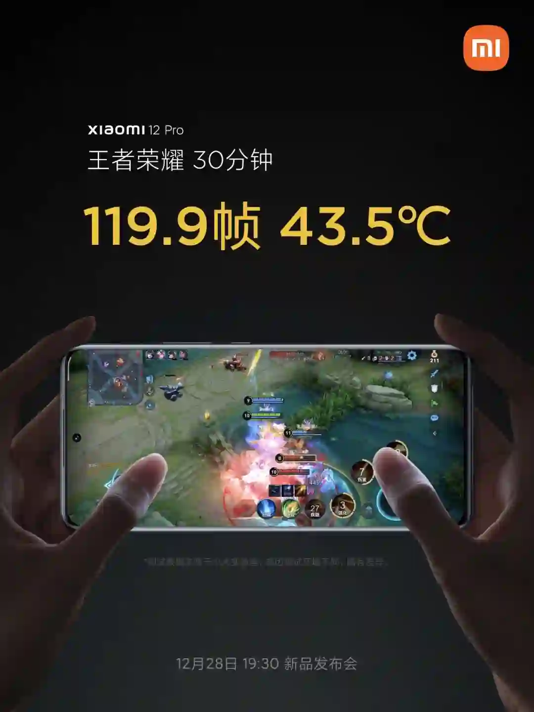 随后,小米官方就预热公布了有关小米 12 Pro 温控的数据,官方表示小米 12 Pro 近满帧玩《王者荣耀》半个小时,稳控温度,最高 43.5 度。小米表示,这依赖于动态性能调度技术。该技术可实时分析游戏画面,动态调度“骁龙 8”输出性能。“团战时,预判战局,毫秒间满载释放对线时,以低功耗为大场面保存体力。”
