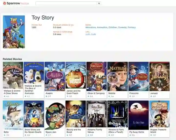 SparrowRecSys 的相似电影推荐页