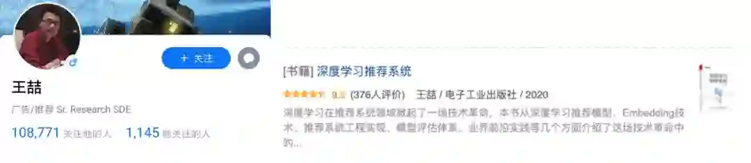 所以,想学习推荐系统,关键在于 「体系化 + 实操」。最近,我又重温了 《深度学习推荐系统》 这个专栏,2 刷有不少新的启发。作者王喆,Roku 推荐系统架构负责人,也是圈里的大佬,一直深耕在推荐系统、计算广告领域,经验非常丰富。他之前出过同名的书,豆瓣评分 9.3,相当高。他还是知乎 10W+ 粉丝的大咖,分享的很多知识和观点,影响了不少人。