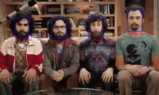 接下来,对于每个图像,定位被试的脸并计算面部描述符,就像之前对输入图像所做的处理那样: