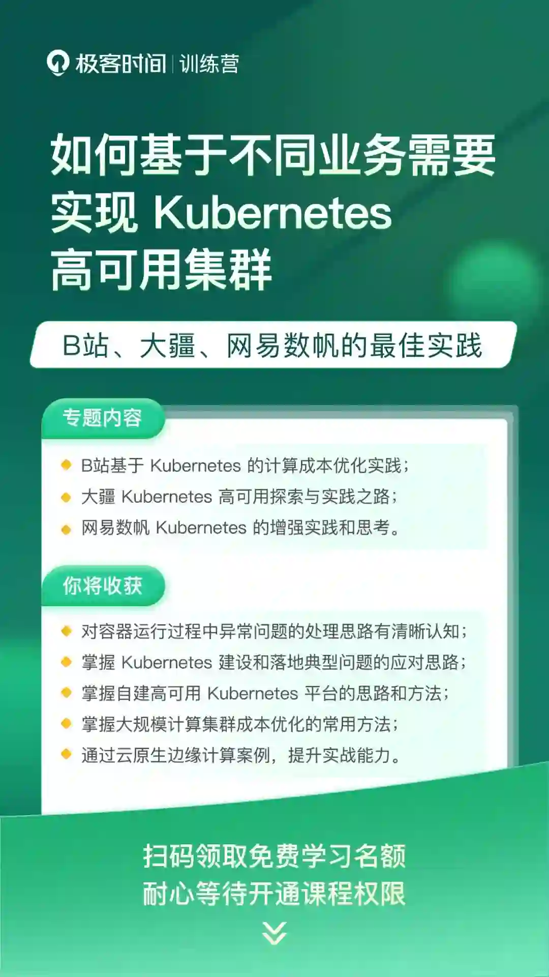 这里给你推荐一个非常牛的“K8s集群实战”专题,是B站、大疆、网易数帆的几位大佬,聚在一起分享了他们在K8s集群优化过程中踩过的坑、验证过的最佳实践。