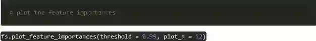 FeatureSelector通过LightGBM库的梯度提升机来查找特征重要性。为了减少差异,对特征重要性进行平均超过10次的GBM训练。此外,通过使用验证集(可关闭)进行早期停止来训练模型,以防止对训练数据的过度拟合。