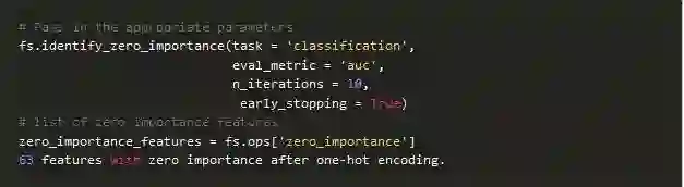 下面的代码调用了该方法并提取了零重要性特征: