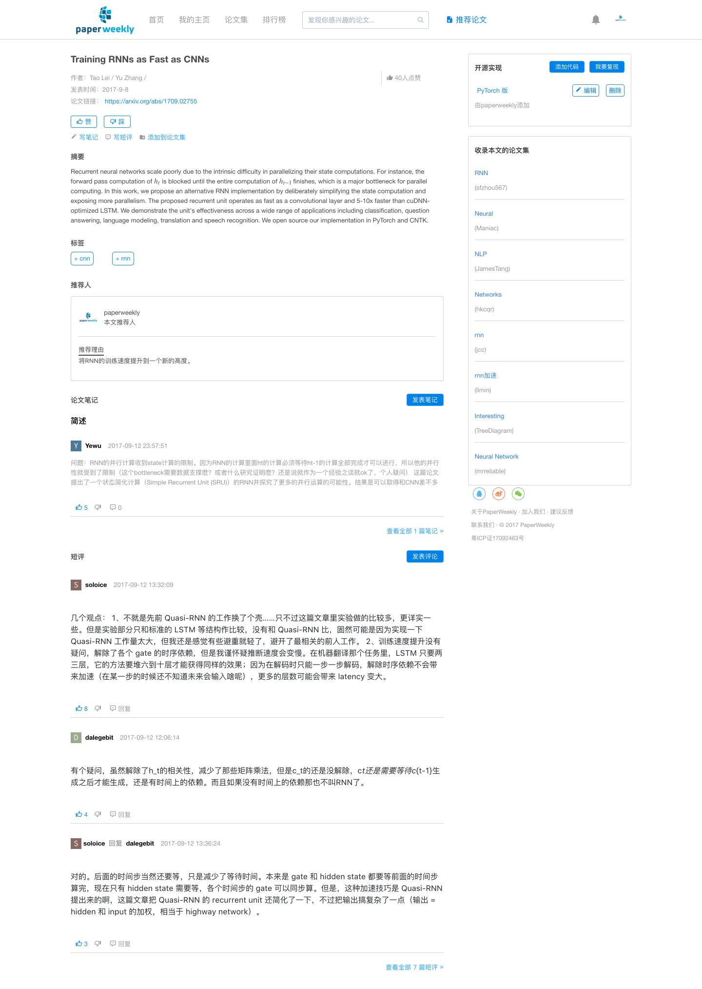 2015 年的时候,我做了一款叫做 rsarXiv 的 app,目的是帮助大家自动过滤出每天感兴趣的 arXiv paper,这样做有个天然的问题就是无法保证 paper 质量。但是放在社区里,这个问题便迎刃而解,于是我们做了今日 arXiv 这个功能。
