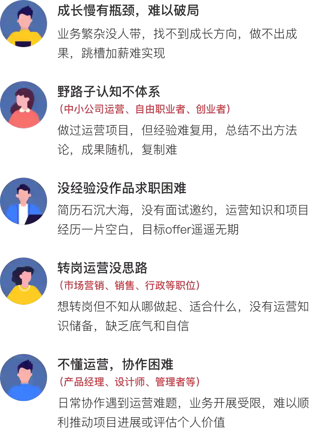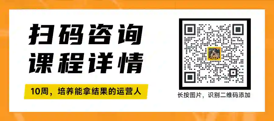 无论你是零基础想入门运营,还是在职人员想晋升,还是想拓宽能力边界......这门课程都非常适合你,如果你不清楚自己是否适合这门课程,欢迎扫码咨询运营顾问。