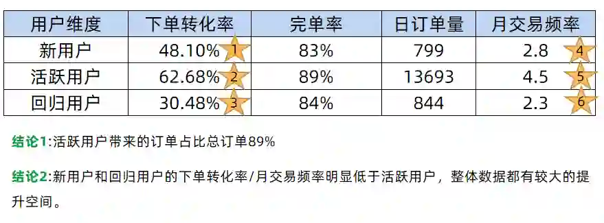 第二个是新用户跟回归用户的下单转化率跟月交易频次上做提升。