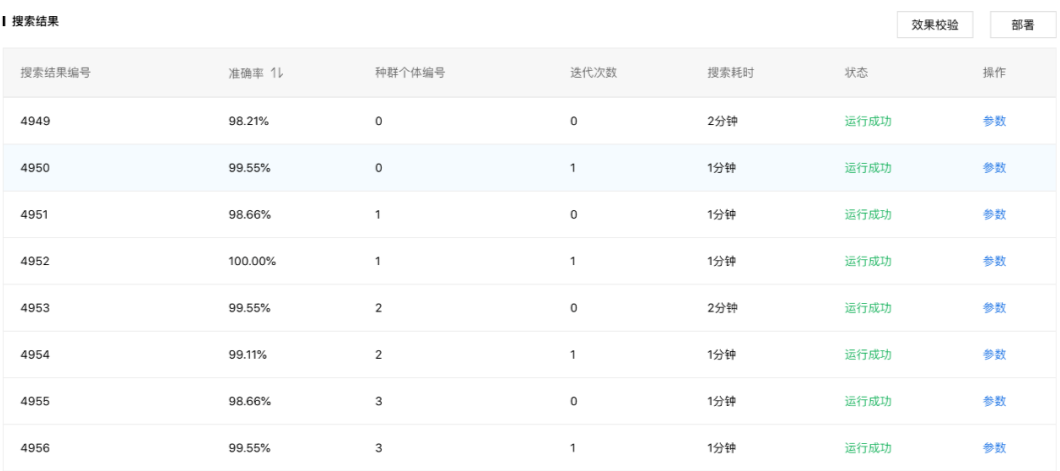 任务提交之后,过一会当任务进入“超参搜索中”的状态时,就可以看到各个试验的进度了,包括各个试验的状态、日志和准确率(mAP)