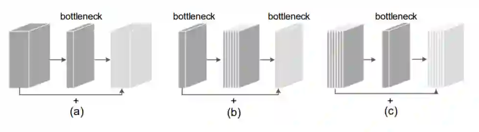 依图团队并未在瓶颈层间构建短连接,而是在更高维特征之间构建短连接(见图三b)。