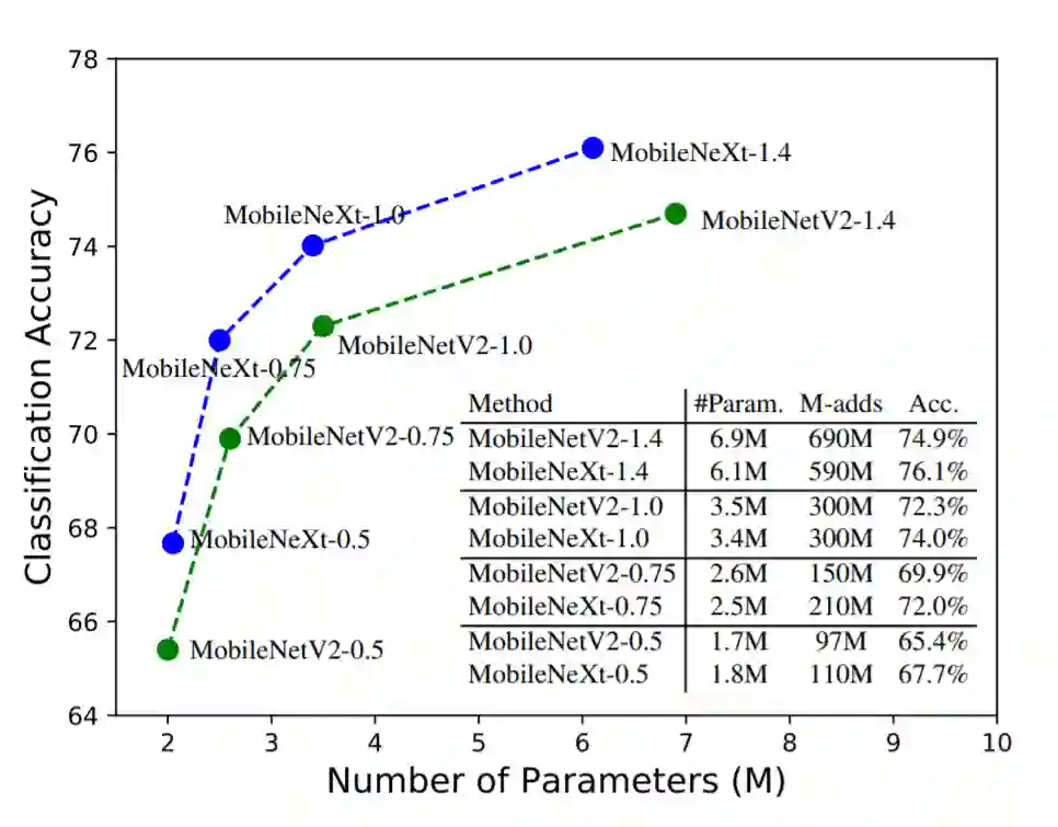 对标MobileNetV2,MobileNeXt参数更少精度更高