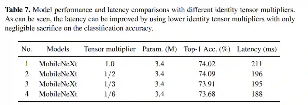 在不使用SE等性能提升模块的条件下,相比于主流的MobileNetV2,MobileNeXt