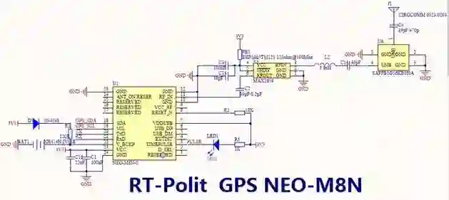 GPS模块是一个独立的单元,通过串口接到主控的串口5上,上图中的原理图是我早期时候设计的基于Ublox M8N的GPS模块,这里刚好用到。