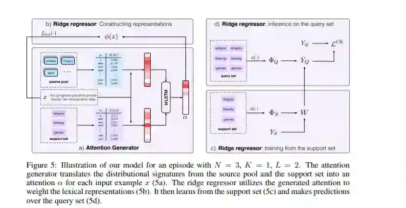 在本文中,我们探讨了元学习在小样本文本分类中的应用。元学习在计算机视觉方面表现出了很强的性能,在计算机视觉中,低级模式可以在学习任务之间转移。然而,直接将这种方法应用于文本是具有挑战性的——对于一个任务来说信息丰富的词汇特性对于另一个任务来说可能是无关紧要的。因此,我们的模型不仅从单词中学习,还利用它们的分布特征,这些分布特征编码相关的单词出现模式。我们的模型在元学习框架内进行训练,将这些特征映射到注意力分数,然后用注意力分数来衡量单词的词汇表示。我们证明,我们的模型在6个基准数据集(1-shot分类平均20.0%)上,在词汇知识学习的原型网络(Snell et al., 2017)上,在小样本文本分类和关系分类上都显著优于原型网络。