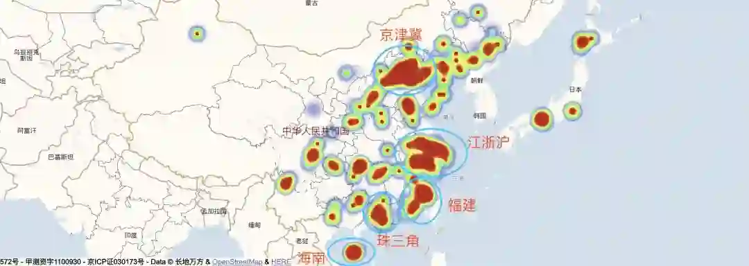 最后来看看效果叭,动态地图支持放大缩小,可仔细查看各省、市、区景点热力图