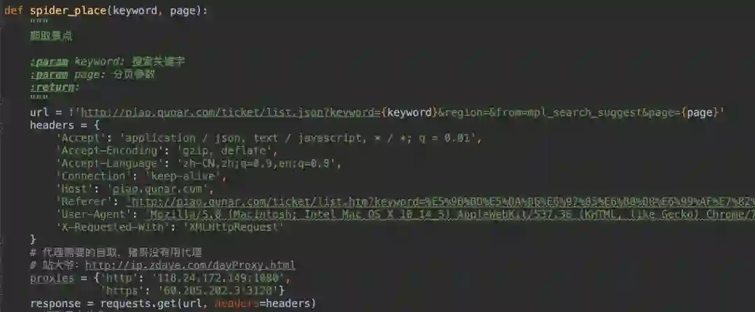 这里说下去哪儿门票页抓取数据还是很简单,不需要登录、不需要代理 、甚至不需要header也可以成功,后面批量抓取页没出现限制,相对于淘宝来说简单了许多!