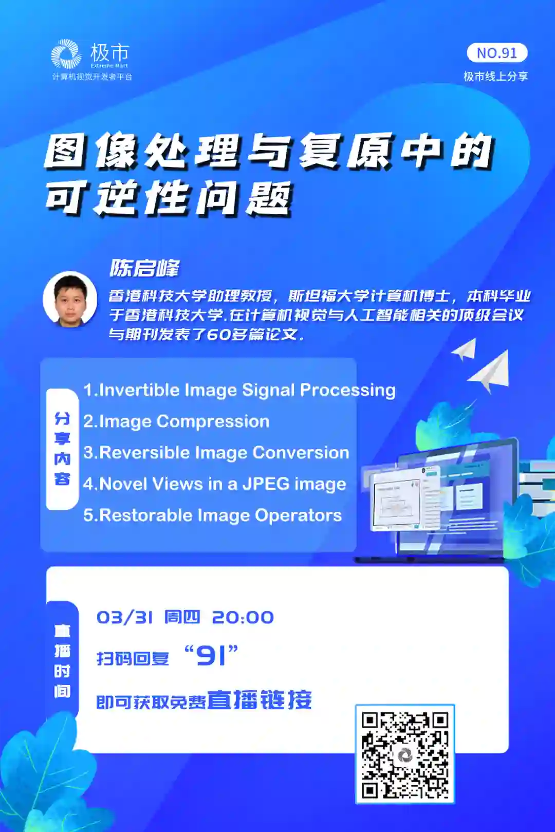 关注“极市平台”公众号,回复“91”或“陈启峰”可获取免费直播链接。