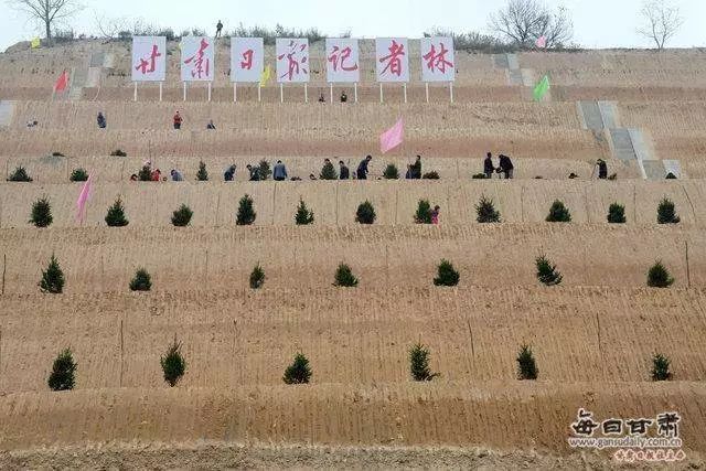 大巴车行进了四个小时,当看到高速公路边的一段山梁被改造成阶梯状,没有一根草的梯田上种着低矮的松柏,上面用几米大的铭牌写着“甘肃日报记者林”时,不用看路标我也知道我已经进入了故乡的地界,因为这个风格我太熟悉了。