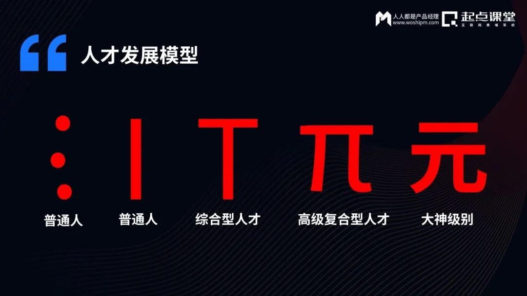 在职场上会多个技能,又有多个能力项,产品、运营、市场,都能干。有可能是一个公司的总经理级别,或者副总裁、CXO级别。